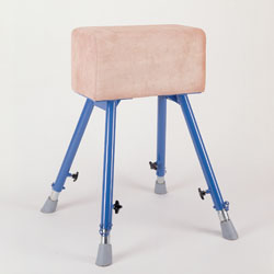 The legs have large rubber feet for excellent grip and are telescopic giving a wide height adjustment from 3' 4" to 5' 4" (1016mm to 1626mm). 1 leg has a fine adjustment to compensate where a floor is not perfectly level so the vaulting buck can be perfectly stabilised.